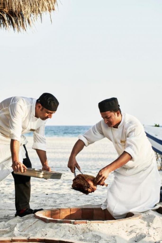 V ceně zájezdu je zahrnuta polopenze formou bufetubez nápojů (nápoje u večeře za poplatek). Hostům je k dispozici několik restaurací a barů nabízejících mezinárodní i místní kuchyni. Hlavní restaurace nabízí bufetové stravování s širokým výběrem pokrmů, další restaurace a bary servírují středomořské speciality, čerstvé ryby, lehké občerstvení a osvěžující nápoje. Lze využít i restaurace okolních hotelů (Juweira Boutique a Rotana).