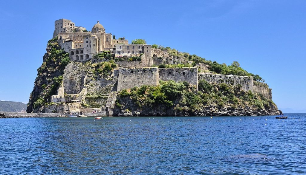 Ostrov Ischia se pyšní opravdu impozantní památkou, Aragonským hradem, který je nejvýznamnější dominantou ostrova. Je vytesán do skály a s pevninou spojen mostem. Kromě toho je zajímavý svou filmovou historií i krásnými výhledy do okolí. Jeho návštěvu zahájíte v staré části hlavního města – Ischia Ponte. Dopřejete-li si i odpočinek v kavárně, neprohloupíte. Výborná italská káva a nadýchaný moučník Babá jsou tou pravou tečkou za dnešním dnem.